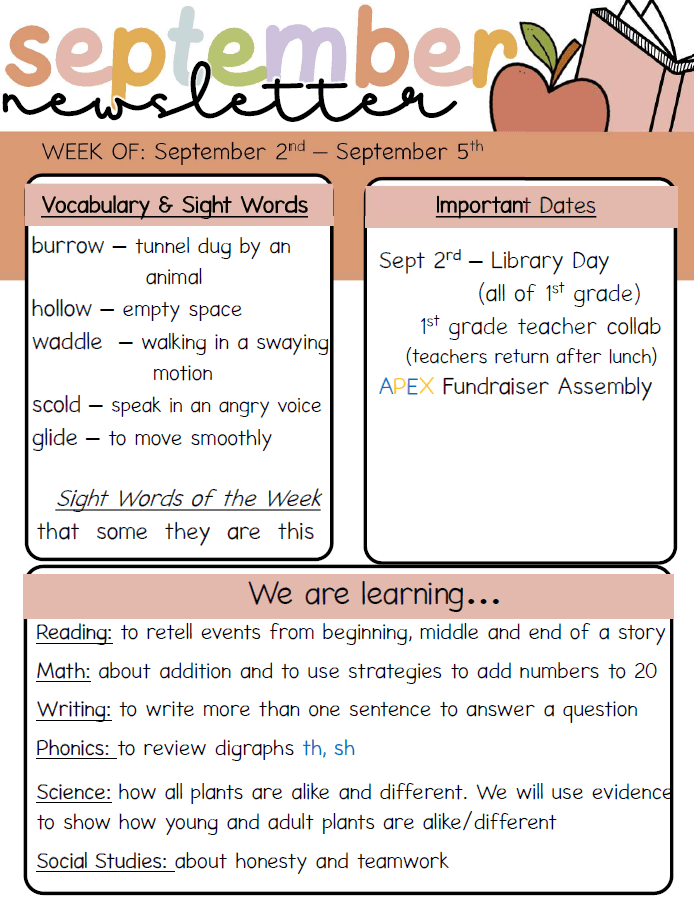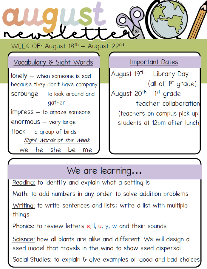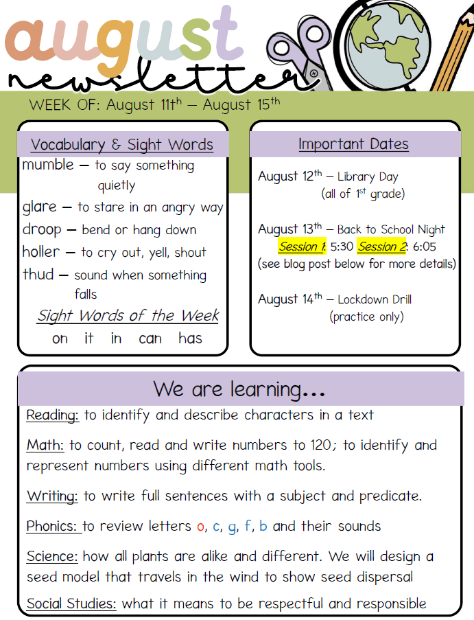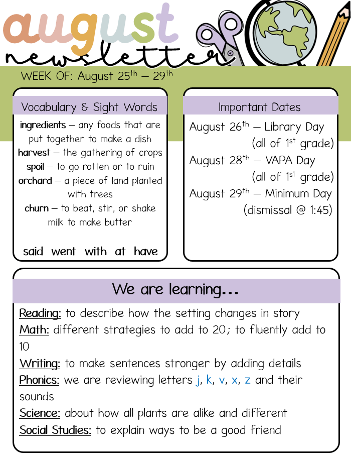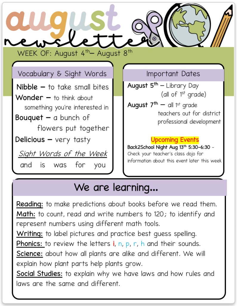 We can’t wait to see everyone tomorrow for the first day of first grade!